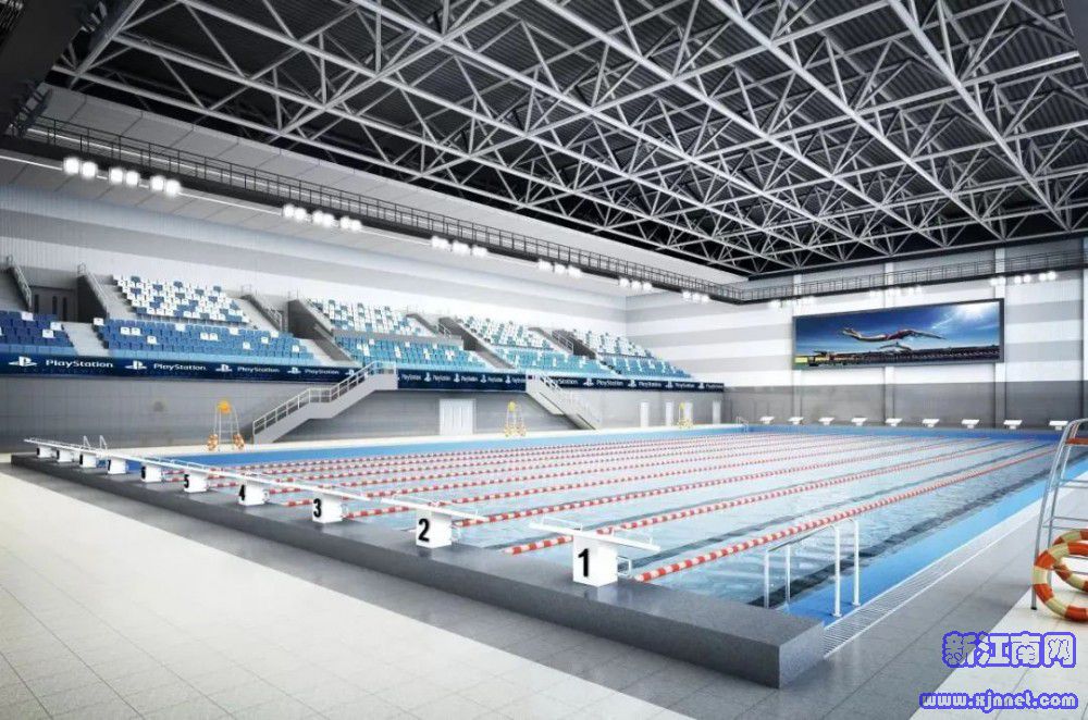 游泳馆一层是项目的重头戏。主要包括标准比赛池1片(50*25m,10赛道)、训练池1片(25*20m,8赛道)以及戏水池1片(约为100平方米左右)。