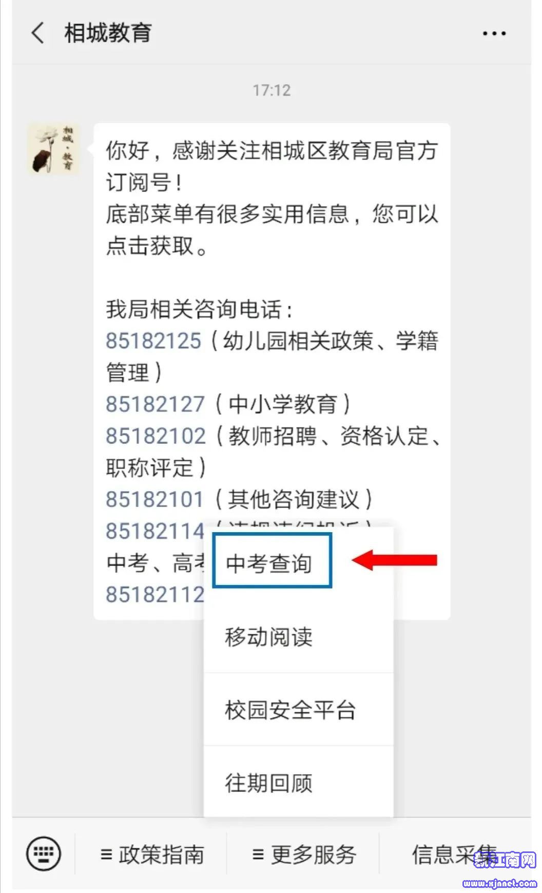考生可登录“相城教育”官方微信,点击页面下方“更多服务-中考查询”,查询以上批次的录取结果。