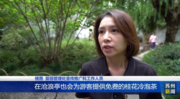 留园管理处宣传推广科工作人员楼茜介绍,会在园内进行环境布置,节日期间,在网师园夜花园会赠送桂花主题扇、桂花棒冰,在沧浪亭也会为游客提供免费的桂花冷泡茶。