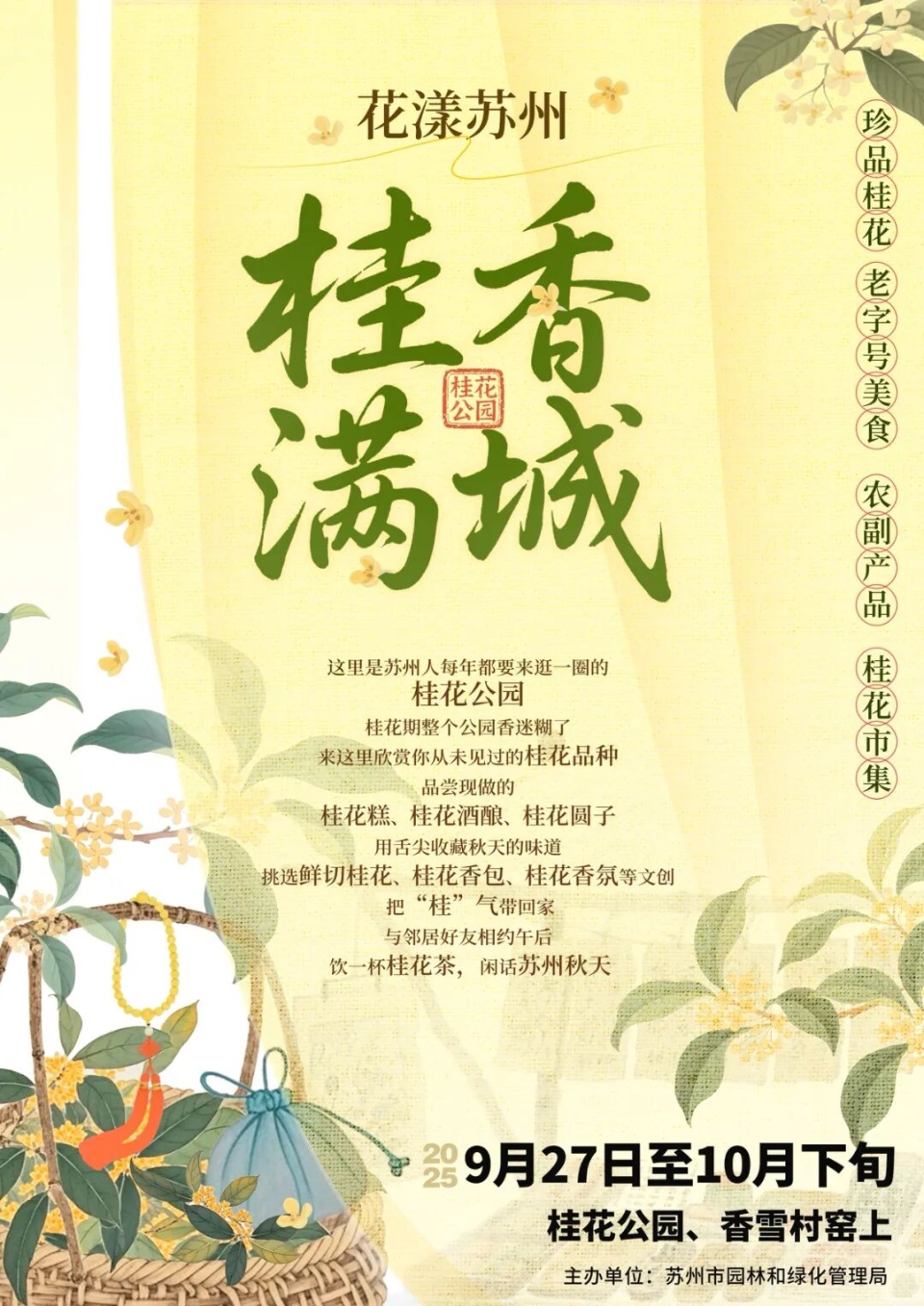 除了安全保障,各类文化活动也已准备就绪。9月27日至10月下旬,苏州园林将以“花漾苏州 桂香满城”为主题,推出一系列桂花主题活动。