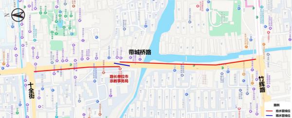 带城桥路北起十全街,南至竹辉路,全长约560m。主要施工给水管、局部雨水管、雨水边井、雨水支管及井加固。