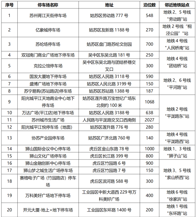 为方便游客快捷、高效出行,建议将车辆停放至地铁沿线大型停车场后,换乘地铁出行。具体停车场梳理情况如下: