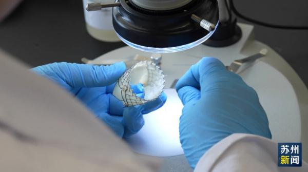 在沛嘉医疗的瓣膜实验室,工作人员正在将猪心包缝制到镍钛支架上,替代人的心脏原生主动脉瓣膜运动。企业负责人告诉记者,当前,这款产品的小规格版本已完成多次临床试验和随访,并向国家药监局递交注册申请,正在实验室内进行疲劳与耐久度测试。