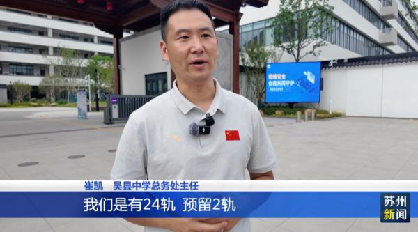 吴县中学总务处主任崔凯介绍,有24轨,预留2轨,满员运行72个班,校区投用以来,增加了学位近3000余个学位,弥补了高中学位的空缺。
