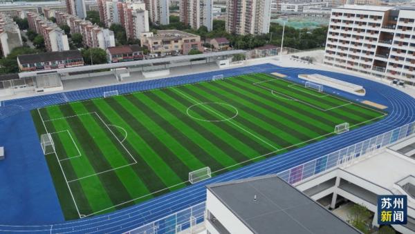 今年的民生实事项目还开展了“普通高中扩容提质行动”。走进新投用的吴县中学浒关校区,除了崭新的教学设施,校区还将文体楼顶层改造为运动场,下方整合各功能区。