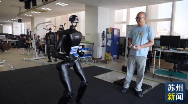 在前不久举行的2025世界人形机器人运动会上,吴中区企业鹿明机器人研发的全尺寸人形机器人LUS2,凭借精准到毫秒的节奏掌控,用算法重新定义的舞步美学,夺得群体舞蹈赛银牌。这款机器人也是全球首个实现“1秒弹射起身”的全尺寸人形机器人。