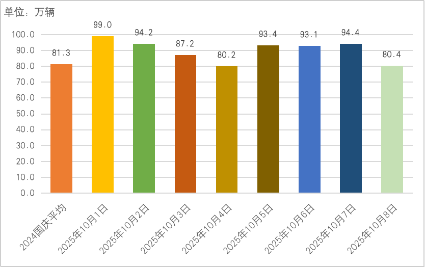 TOCC预测,预计今年国庆(中秋)假日期间,全市公路出行需求将呈现“总量高位、自驾主导、时段集中”的特征,周边路网高峰时段通行压力突出。预计全市部分高速公路和普通国省干线大流量路段在国庆(中秋)假日期间会出现短时拥堵,交通流量大、交通事故等为路段拥堵的主要因素。全市公路网将进入高位运行状态。预计出行高峰将提前启动,假期前一天(9月30日)午后至傍晚将出现首轮出行小高峰;假日期间流量持续处于高位,返程高峰预计出现在假期末期(10月7日至8日)。