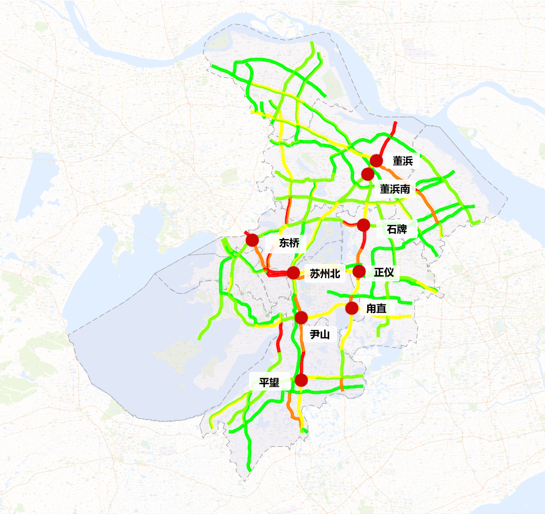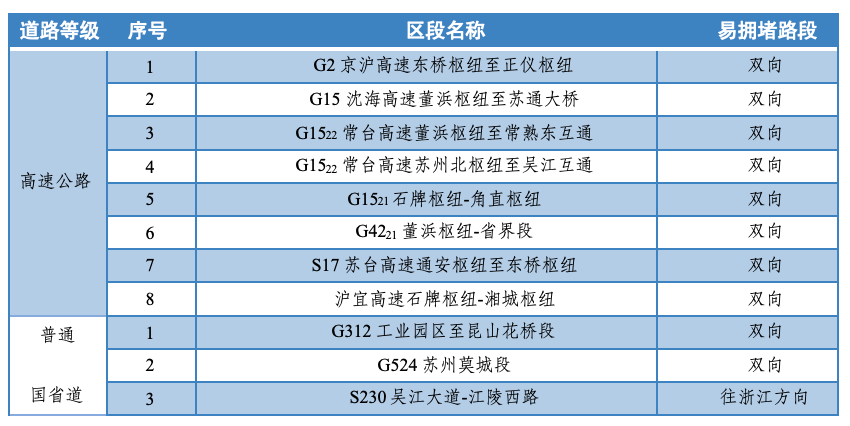 1 G15沈海高速董浜枢纽至苏沪省界(K1218+233-K1251+495)封闭往上海方向车道;封闭董浜枢纽G42??南京转G15往南通、苏州方向,G15上海转G15??往苏州方向,G15南通转G42??南京、上海方向,G15??苏州转G15上海、南京方向匝道;封闭沙溪枢纽S80转G15上海方向和G15双向转S80匝道;封闭太仓北枢纽S48双向转G15匝道、G15上海方向转S48匝道。