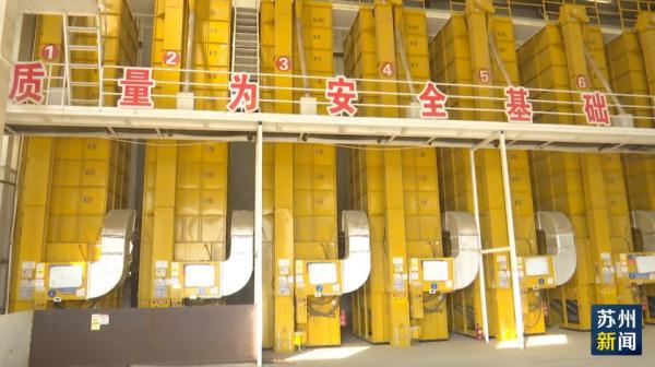 在吴江佳禾家庭农场内,稻谷收割后被直接送入水稻机械化烘干加工中心。农场投入建设的自动化稻谷烘干生产线,配备10台大型低温干燥机,日处理湿谷能力可达上百吨。干燥机可以将稻谷的含水量在48小时内从26%降到14.5%。