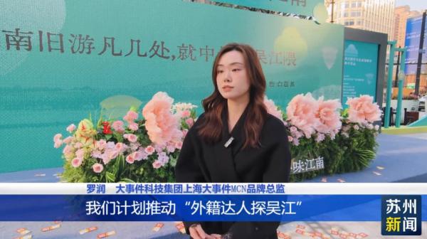大事件科技集团上海大事件MCN品牌总监罗润表示,计划推动“外籍达人探吴江”深度体验游,首先会组织一批在国内生活且有影响力的外籍达人作为吴江旅行先锋团,希望为吴江打造一张国际化的名片。