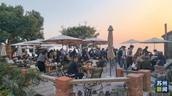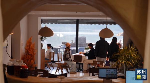 位于吴中区光福镇的冲山岛灯塔,是当地观鸟打卡的核心地标,长堤沿途设有4处打卡点与6座观鸟台。监测数据显示,仅2024年,吴中区5个监测区观测到的白骨顶、罗纹鸭等候鸟数量就接近7.5万只,加上其他区域的候鸟种群,越冬候鸟总量超过10万只,其中不乏小天鹅、白琵鹭等国保动物。候鸟翩跹而至,也带动了沿湖周边的消费“流量密码”。 下午4点刚过,位于太湖畔的这家咖啡店内,顾客络绎不绝。临湖露台上,大家边品咖啡,边用手机记录鸟儿与美景。