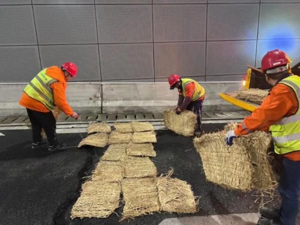 交警队员介绍,辖区内所有跨线桥和涵洞昨天都铺上草包,同时预防性撒上工业盐,以防道路结冰。