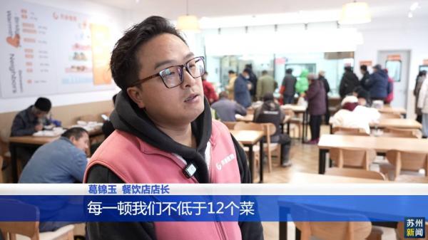 餐饮店店长葛锦玉介绍:“每一顿不低于12个菜,包括特色菜,杂粮、包子、馒头都有的。凭身份证到我们这边办卡,成为会员后在整个数据库里面都有记载,包括哪位老人有慢性病,比如针对高血压、高血脂的老人,我们推荐的菜也不一样,平台后面都有每个老人的健康档案管理。”