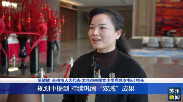 苏州市人大代表、太仓市朱棣文小学党总支书记、校长吴敏敏表示,规划中提到持续巩固“双减”成果。作为学校,要发挥学校主阵地的作用,提质增效,同时发挥“家校社”协同育人的力量,为孩子们营造一个健康绿色的生态教育体系。