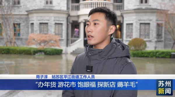姑苏区平江街道工作人员周子淳表示,主要是围绕“办年货游花市饱眼福探新店薅羊毛”五大方向展开,串联餐饮、零售、住宿、文旅等相关产业,构建了全领域多层次联动的春节消费场景,上至国际大牌,下到冰糖葫芦,整个商圈活动开展了一系列的美陈活动,比如说平江路有一个“寻汤圆”的活动,还有一个“好柿(事)将来”。