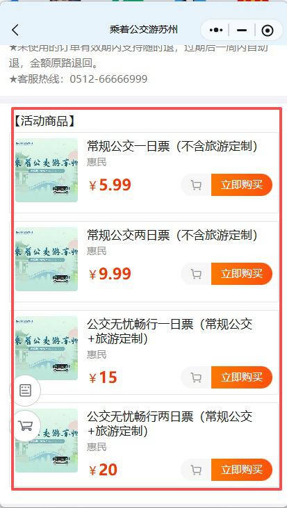 点击“乘着公交游苏州”,所需的1日票或2日票类型;
