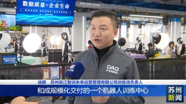 苏州吴江智训未来运营管理有限公司训练场负责人徐鹏介绍,吴江训练场是江苏省首个智能机器人训练平台和场景应用的开放平台,也是国内在数据采集这一块成规模化生产和成规模化交付的一个机器人训练中心。