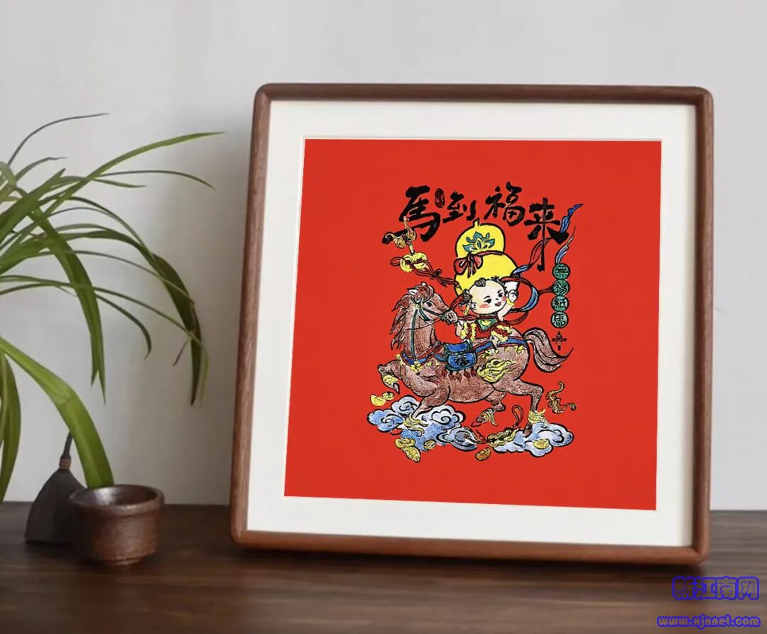 今年推出的“马到福来”木刻年画里,阿福策骏马踏云而来,带着无锡纸马的古朴意趣,把福气稳稳送到眼前。