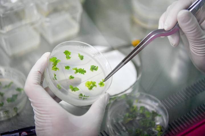 在天津市农业科学院种质资源与生物技术研究所,科研人员开展黄瓜遗传转化筛选试验。新华社记者 孙凡越 摄