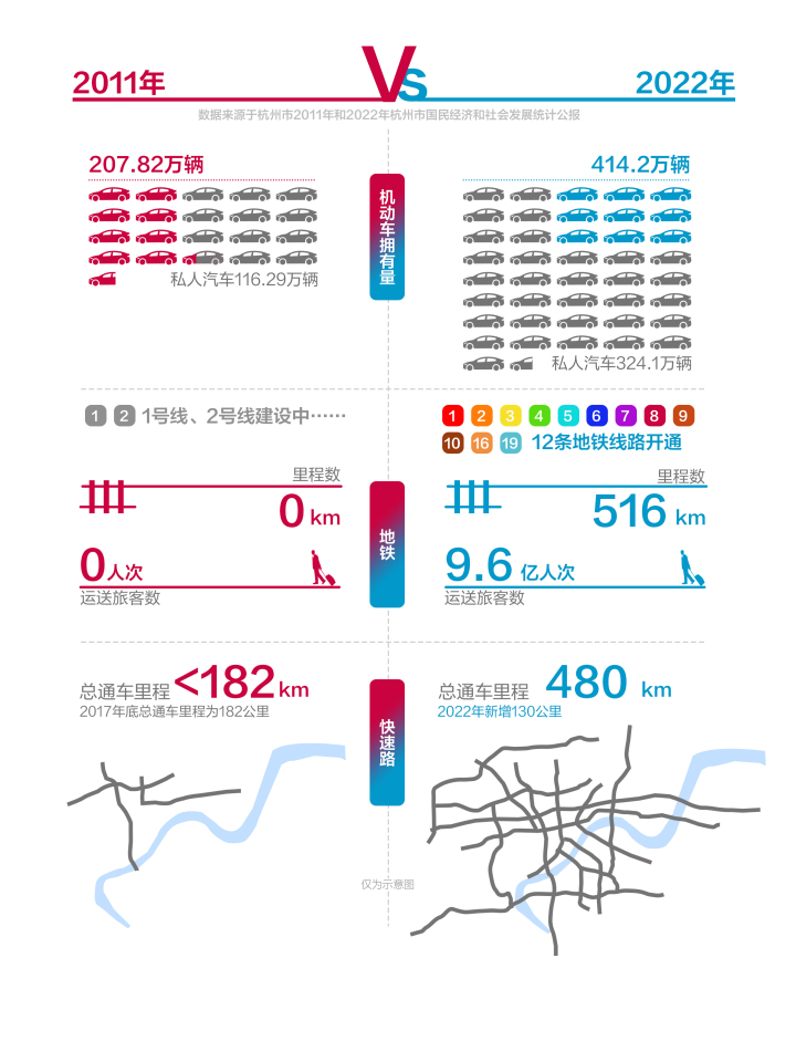 12年里,严格执行“限行限牌”政策下的杭州,机动车保有量有序增长,与此同时,杭州的交通也在奋力追赶机动车增长的速度,如今已构建出地面、地下、空中能联动的立体交通网。