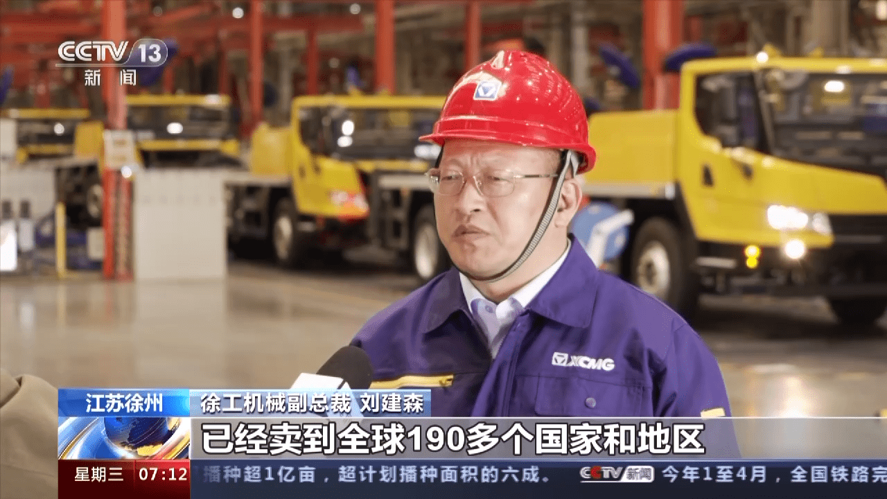 徐工机械副总裁 刘建森:现在,我们的产品已经卖到世界190多个国家和地区。今年一季度,徐工国际化收入突破106亿元,创下单季度历史最高纪录,国际化收入已经占到我们营业收入的45%。