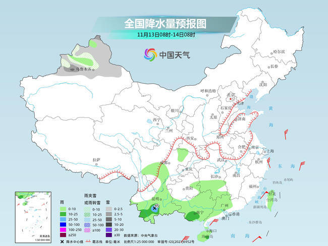 南方阴雨连连降水范围缩减 新疆雨雪频繁