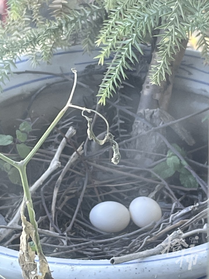 几天后,它挪了挪身子,赫然露出两个蛋来!白白的。