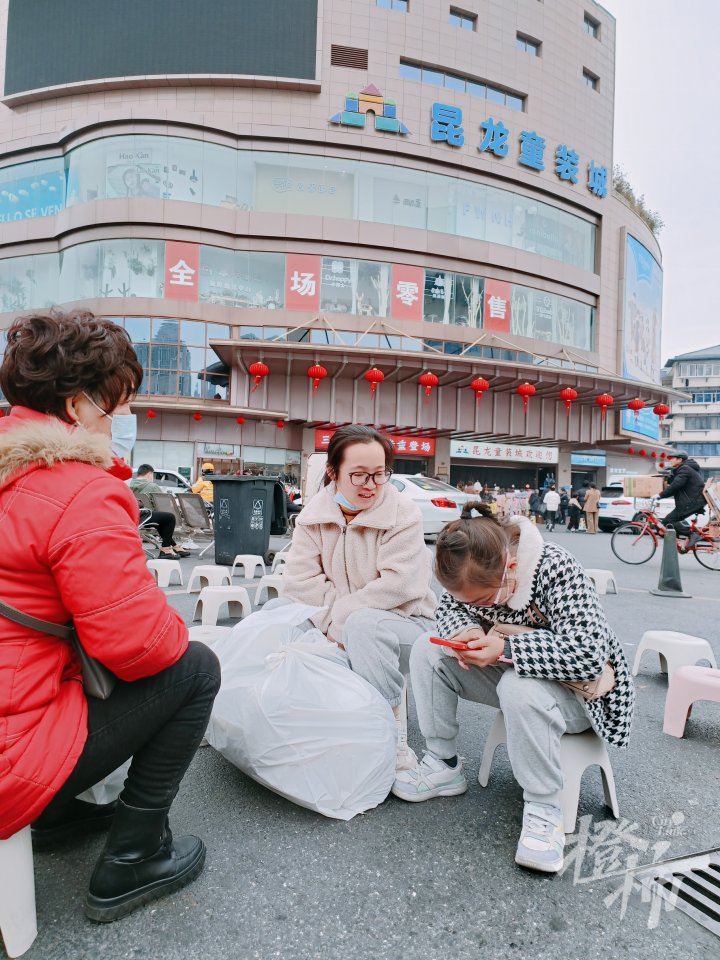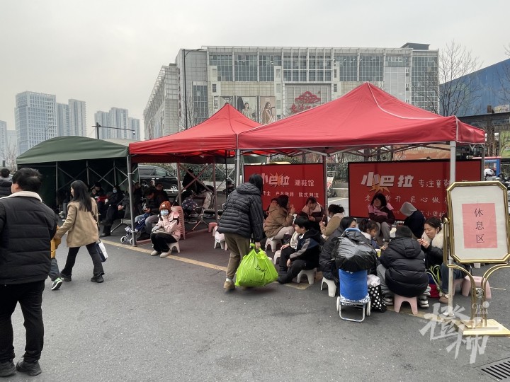 葛女士说,周六是给女儿买过年新衣,今天是给大人买过年新衣,知道这个户外休息区,特意过来歇一下,待会还得去逛,再给自己父亲买一些。周六女儿的衣服花了六百多元,今天大人的衣服大概花一千多元。