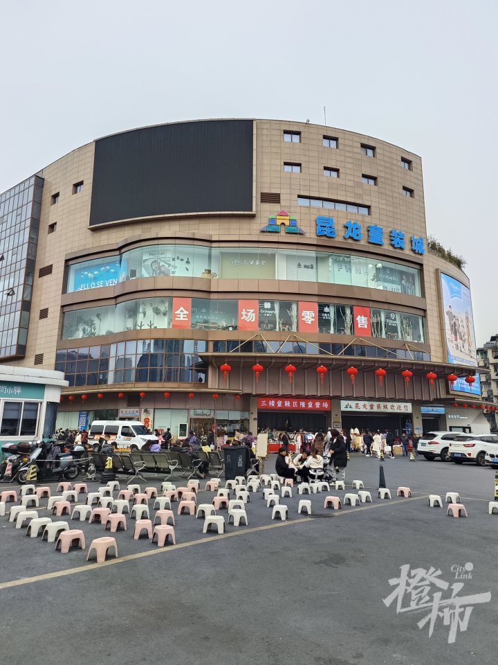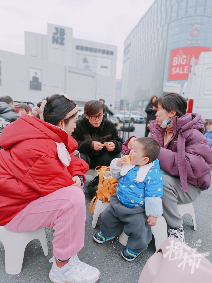 都市快报讯 1月29日上午10:40,橙柿直通车记者赶到杭州四季青昆龙童装城,在童装城的正门口看见了两大、两小停车位上摆放了许多座椅和小圆凳,非常亮眼,顾客在椅凳上休息,不少带着小孩。