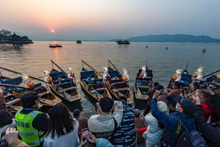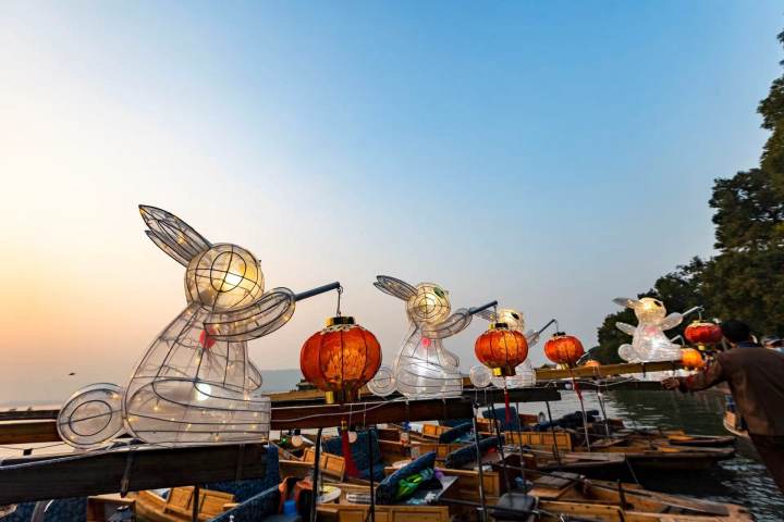 杭州人是懂浪漫的!30条兔子灯福气船亮相西湖边,还可以扫定制“杭州福”集五福!
