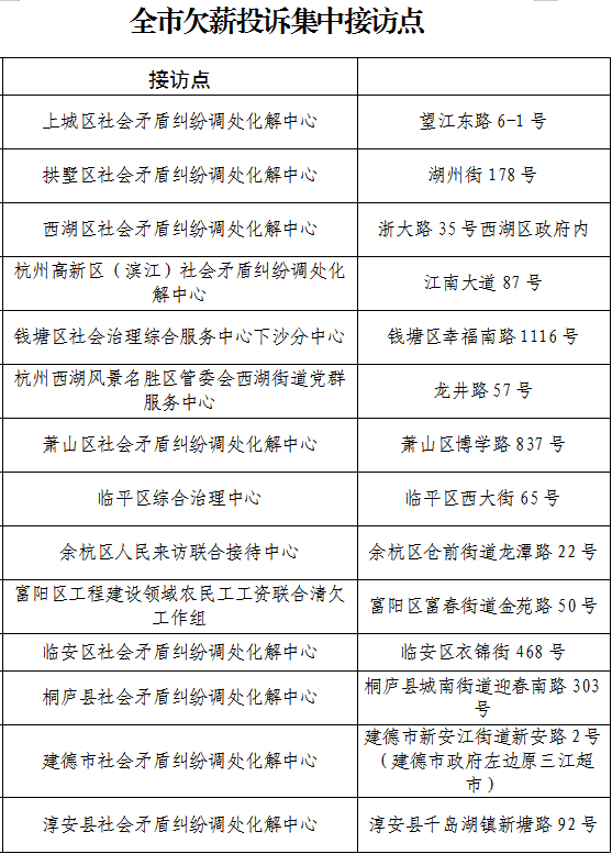 为保障广大劳动者按时足额取得工资报酬,推动类欠薪问题化解,杭州市各区、县(市)政府开展欠薪投诉集中接访活动。