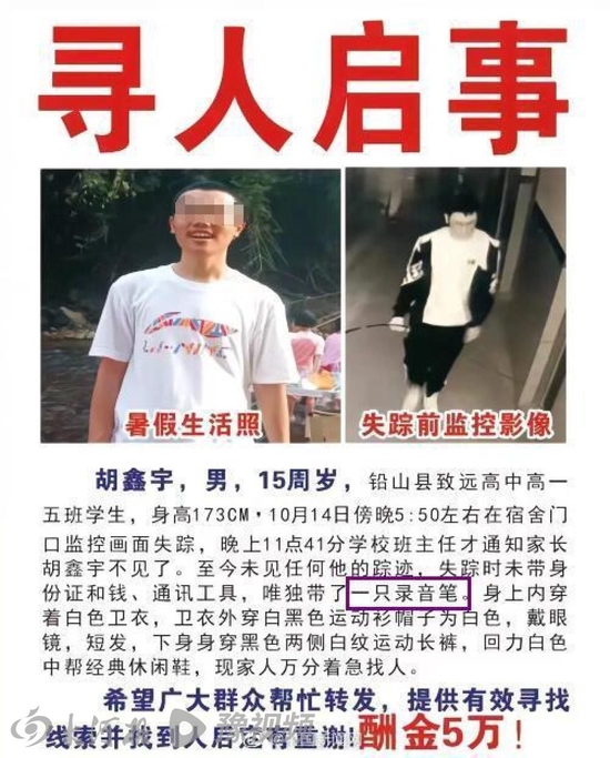 在家属早前发布的寻人启事中也提及该录音笔,称其“失踪时未带身份证和钱、通讯工具,唯独带了一支录音笔”。