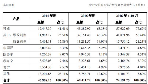 图说:东阳光2017年发布公告显示,可威颗粒剂销售占比持续增长