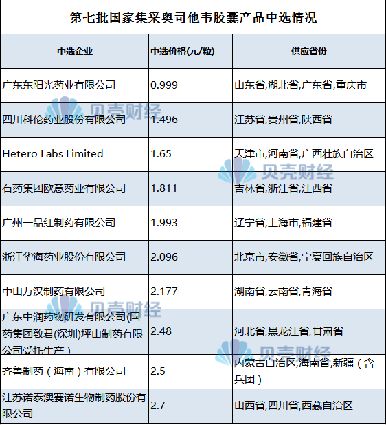 图说:第七批国家集采奥司他韦胶囊产品中选情况