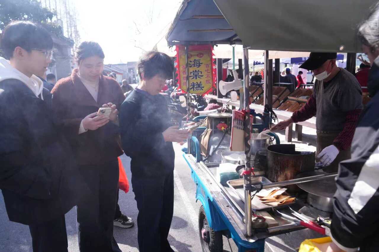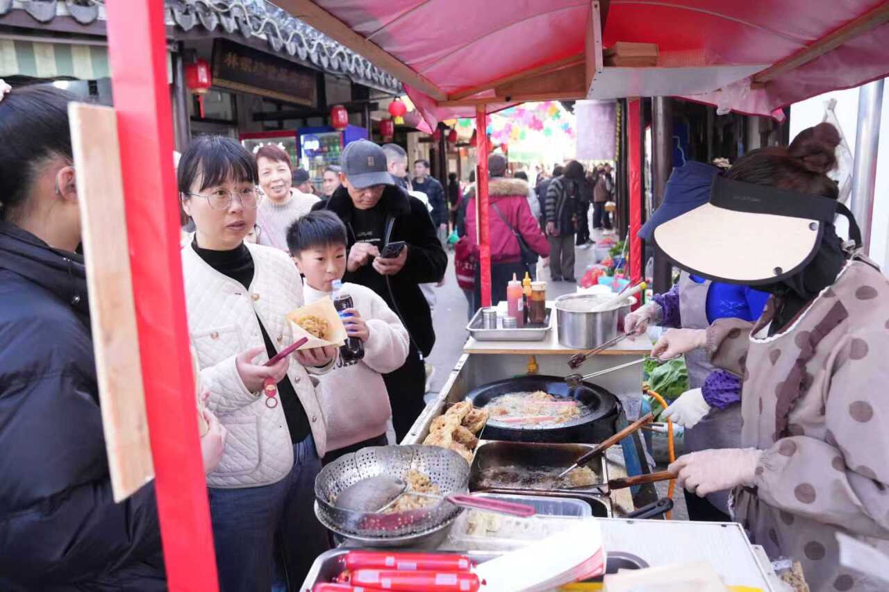 假期过半,“逛吃”浓度不减半!2月21日,“山塘享年味 乘马踏烟花”古镇过大年新春系列活动,在沪浙山塘老街精彩继续。游客们无需远赴苏杭,在沪浙毗邻的山塘老街便能赴一场舌尖上的民俗年味必吃榜之约。