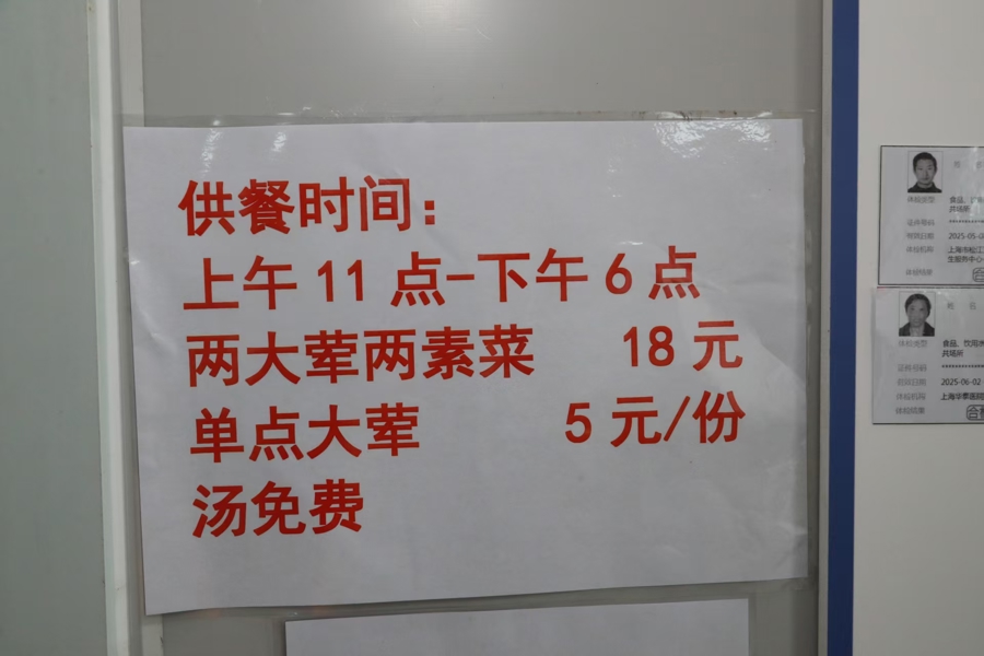 “交心驿—进博站”的具体地址,位于华翔路与苏虹路交叉口西20米。食堂营业时间为11:00~18:00,两荤两素套餐18元(可自选)。