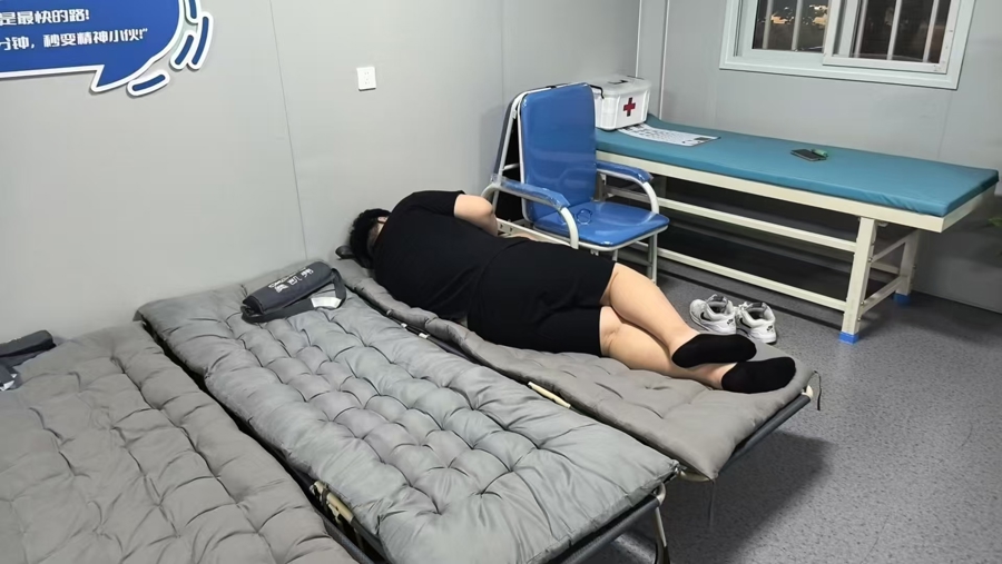 洗漱后,躺在二楼休息室的折叠床上,紧绷的神经得以放松。“能洗个热水澡、吃口热乎饭、安心歇会儿,对我们天天在外面跑的司机来说,这些是最需要的。”小马坦言。