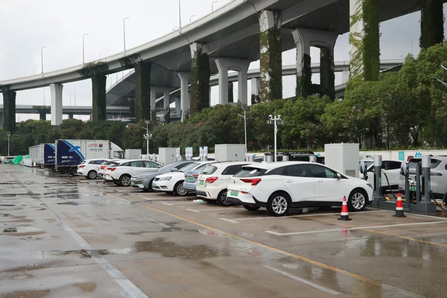 如今,在进博会P6停车场,150个临时车位缓解了停车难,特来电充电站的76个快充桩解决了充电焦虑,现场还提供简易维修工具借用和自助洗车服务。