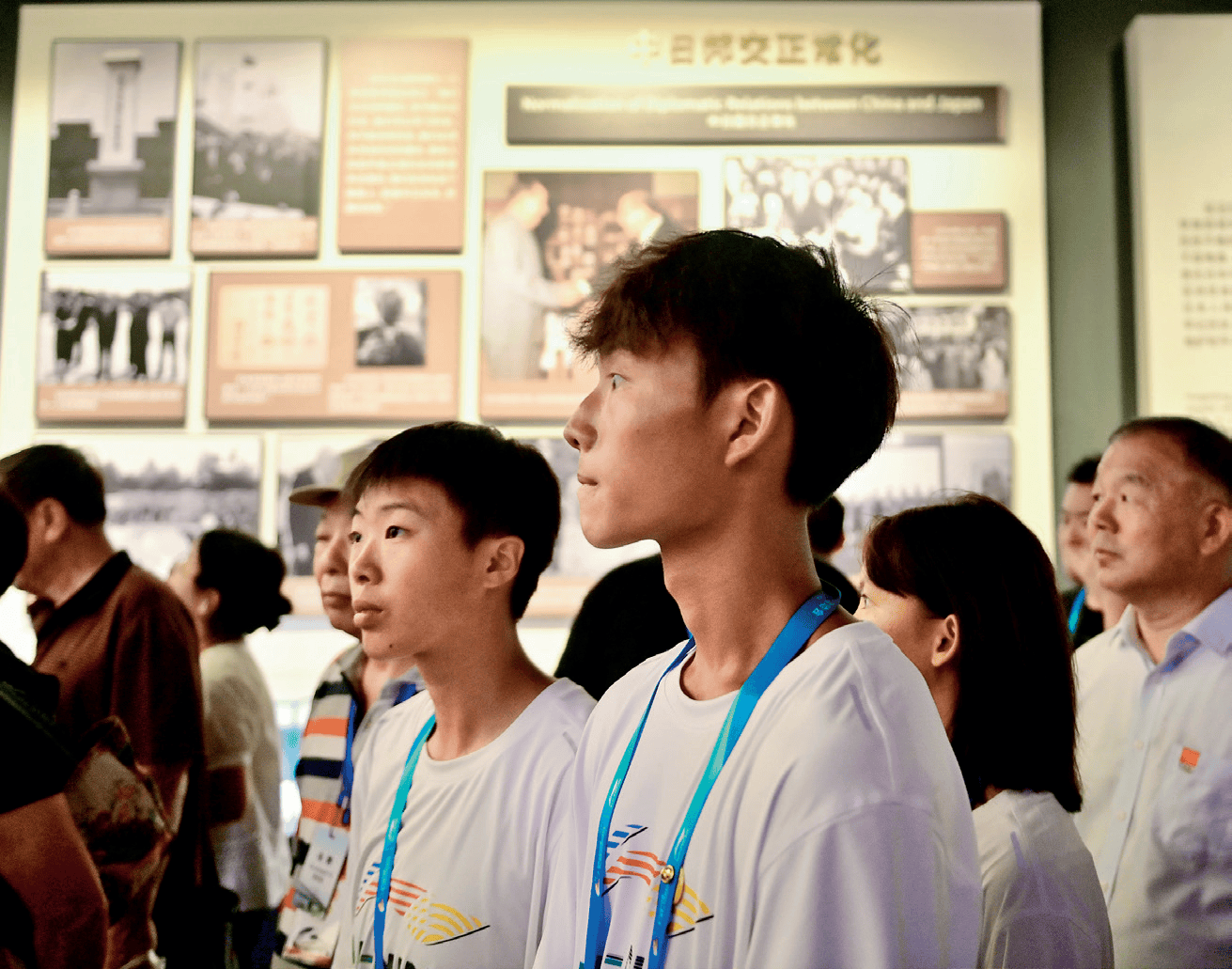 第一届全国青少年田径运动会期间,运动员代表在“九·一八”历史博物馆参观(2025 年 8 月 12 日摄) 吴青昊摄/本刊