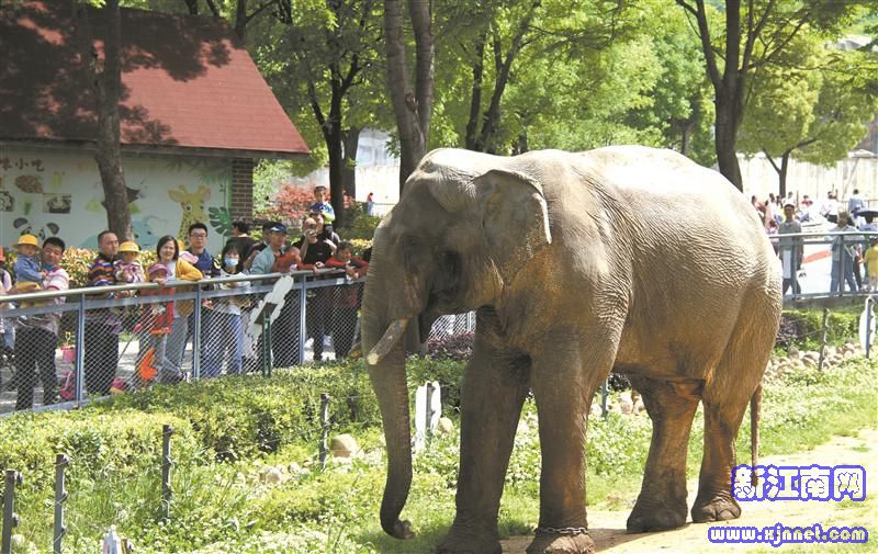 2日,小朋友和家长在动物园与大象开心互动。(刘芳辉 摄)