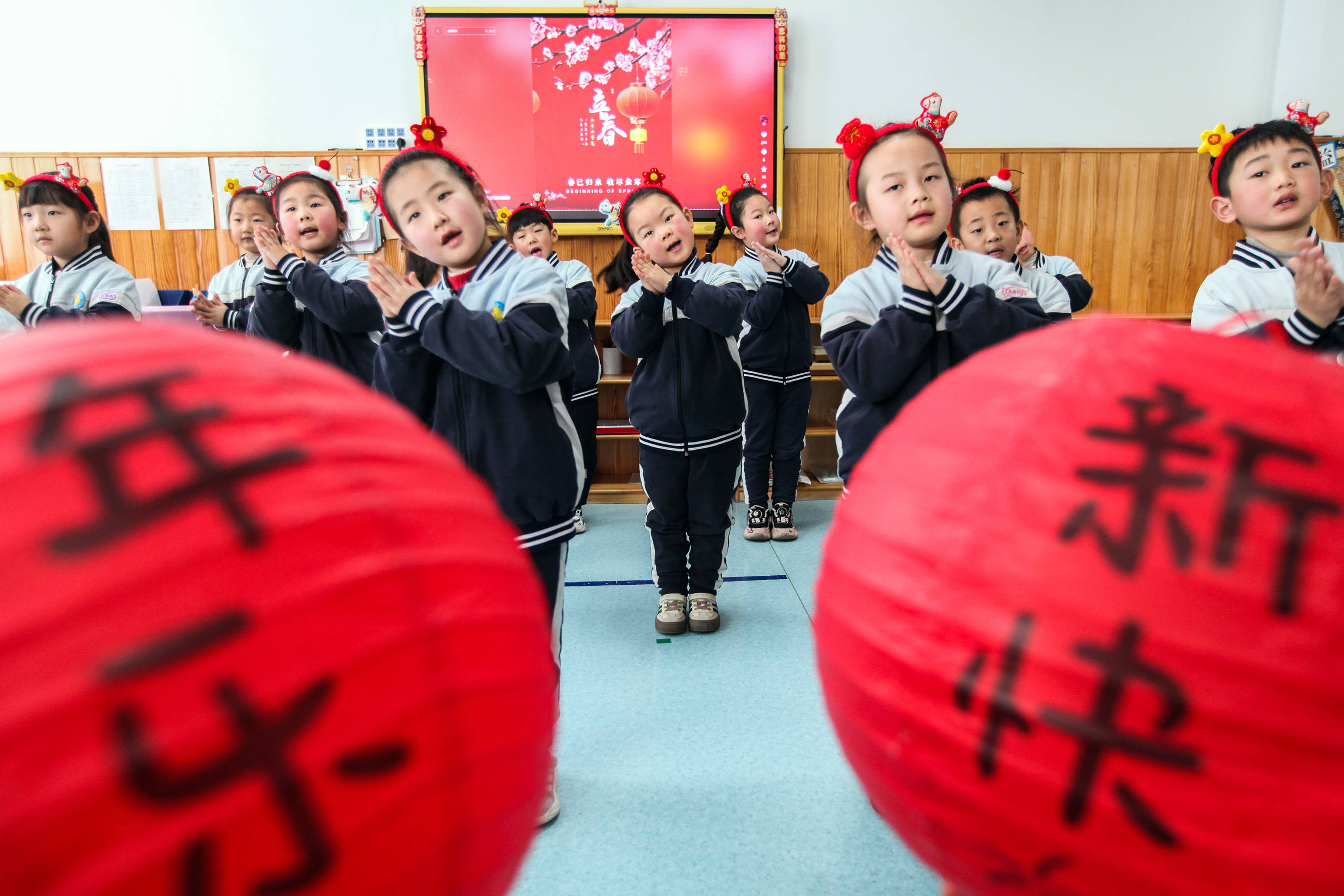 2月2日,在河南省焦作市博爱县县直幼儿园,小朋友开展文艺演出活动。 新华社发(程全摄)
