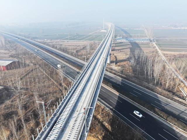 这是雄忻高铁跨京昆高速立交桥(2月1日摄,无人机照片)。新华社记者 朱旭东 摄