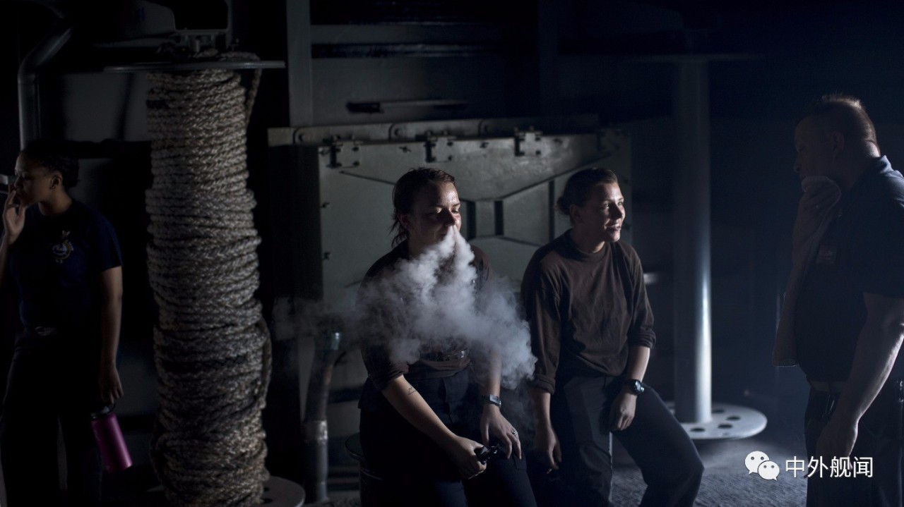 美国海军罗斯福号核动力航空母舰上的吸烟室与正在吸烟的女水兵,药丸感扑面而来