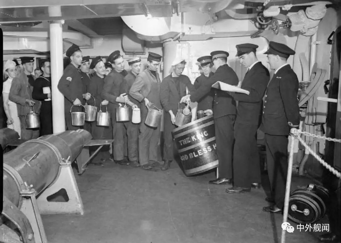 不过军官还是那个老样子,杜松子酒和威士忌依旧是军官们的心头好,不过纯朗姆酒也是他们最喜欢的东西,毕竟纳尔逊之血与朗姆酒同在。不过那会到了1921年之前,海军水手们都是进行的定额配给,并且不能私自购买东西(因为根本买不到,也买不起),并且官兵身份和性格的差距使得英国舰上的矛盾与日俱增(在这里不得不说刻板印象很害人),虽然1921年的NAAFI(英国陆海空三军合作社)成立,但是名声大噪并且也能给水兵提供和军官差不多的食品,物资和材料。但也是直到1931年因弗戈登兵变之后,NAAFI的小卖部开遍巡洋舰以上船只,海军将领也不再是那么冷酷无情,也能亲自到士兵舱和水兵共饮朗姆酒。
