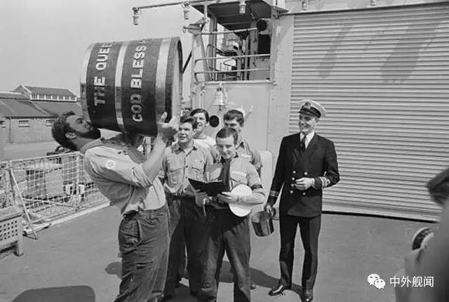 皇家海军21型护卫舰敏捷号的水兵,举着的是。。酒桶