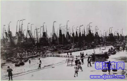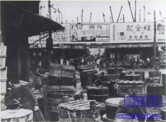 1937年拍摄的上海鱼市场全景,“实业部上海鱼市场码头”一排大字十分醒目