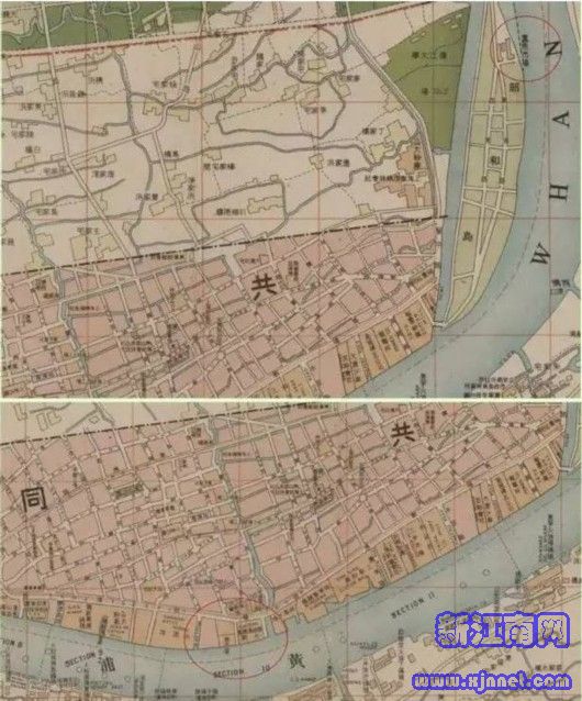 1943年日本绘制的上海地图,标注了“旧鱼市场”和“(新)鱼市场”