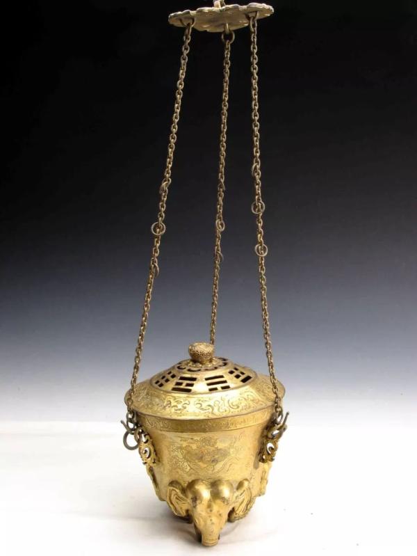 参展的文物中,还有清代宫廷礼器中最珍贵和最耀眼的御前陈设物之一“八卦象足金提炉”,据专家介绍,金提炉一旦在皇家宫殿、庙坛或园苑等处陈设,就代表着“真龙天子”皇帝的驾临。