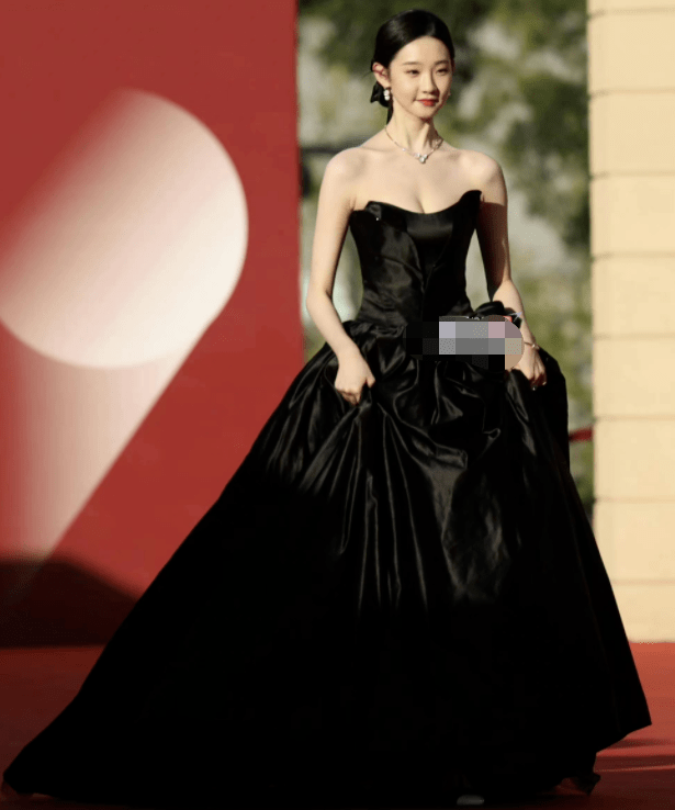 从远一点的镜头里看,一袭黑色礼服的张艺凡,看起来就像黑天鹅一般,皮肤雪白,气质出众。