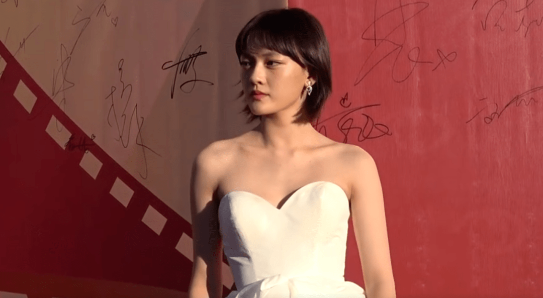2003年出生的文淇,身着一身白色的抹胸礼服,腰间还有一个大蝴蝶结,显得简约又活泼,满脸的胶原蛋白,看起来状态很好。